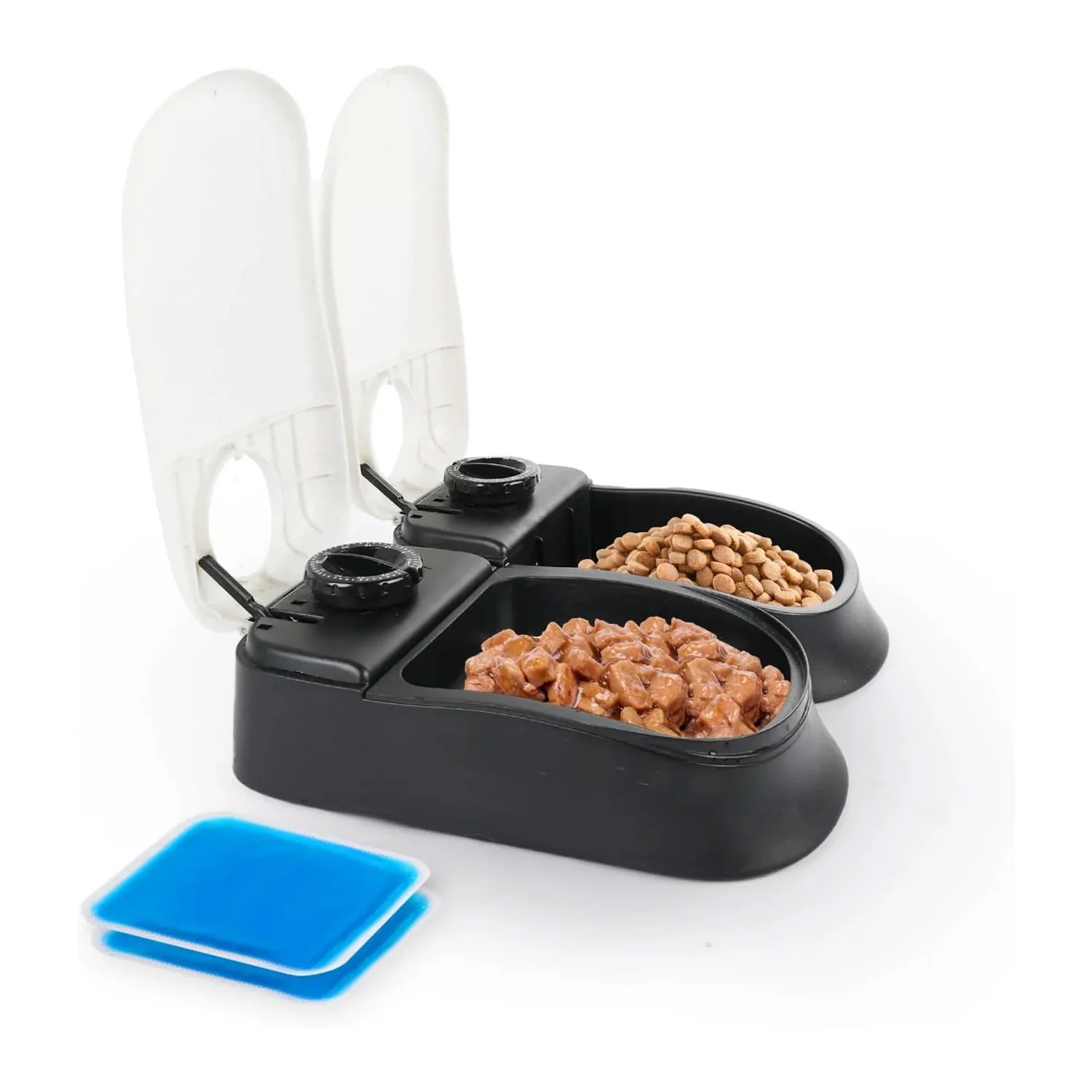 To make sure that the food is fresh for your pet there is an ice gel pack facility. This consists of 2 gel packs that can be frozen then placed under each compartment. This is an ideal solution to feeding your pet on warmer days where un-chilled food may not be palatable.