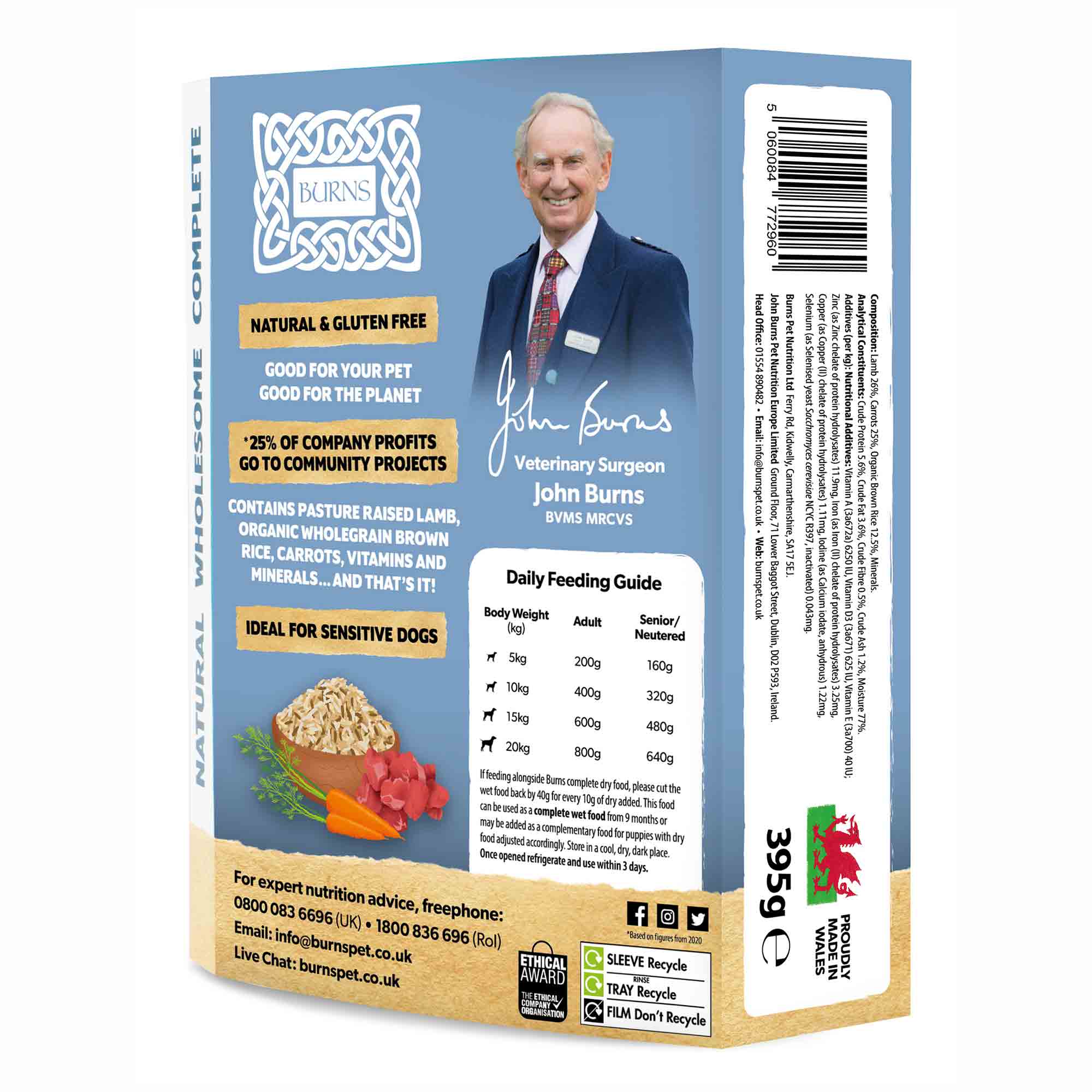 Please note: From time to time, you may notice slight changes in the consistency of Burns Wet Food, for example it may be more crumbly or softer on occasions. Please be assured this is simply due to the natural and seasonal variations of the raw ingredients, and because Burns do not add any binding or gelling agents to their foods.