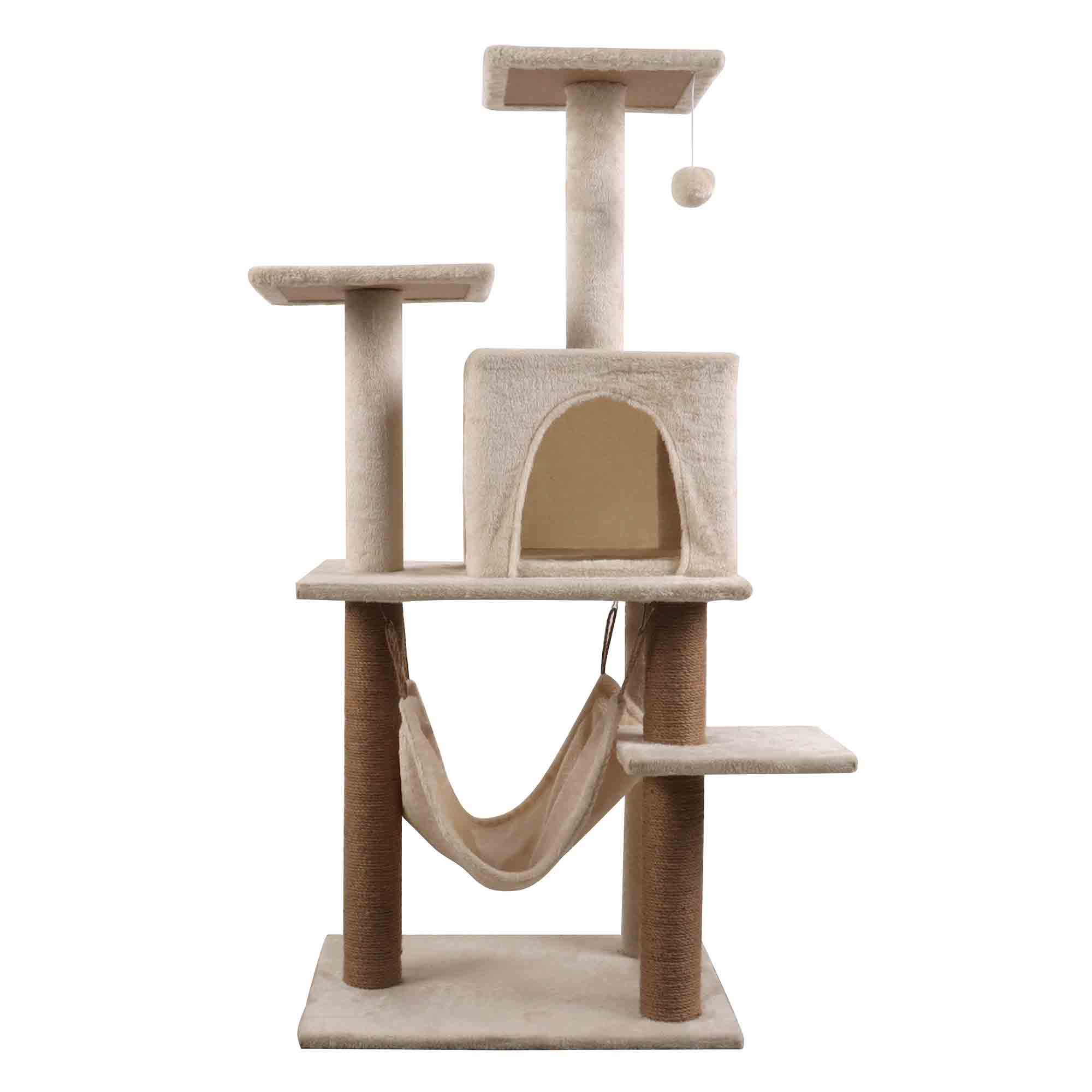 Provide your furry friends with a comfortable and safe place to nap, chill and scratch with this multi-tier Purrshire Hammock Cat Activity Centre. With multiple platforms and scratching posts, this cat tree is ideal for more than one pet. Various platforms, hammock and house gives them different places to rest. It's wrapped in luxuriously soft plush upholstery offering ultimate comfort for your kitty.
